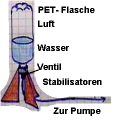 weniger Luft in der Flasche aufgenommen werden kann. Weniger Pumpstösse